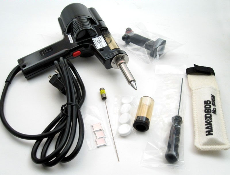 Hakko desolderingIf you purchase the Hakko product, also get the 1.6mm tip and cleaning tool in addition to the 1.0mm tip it comes with.  You will need this for doing large connector pins, transistors and other components with larger leads.