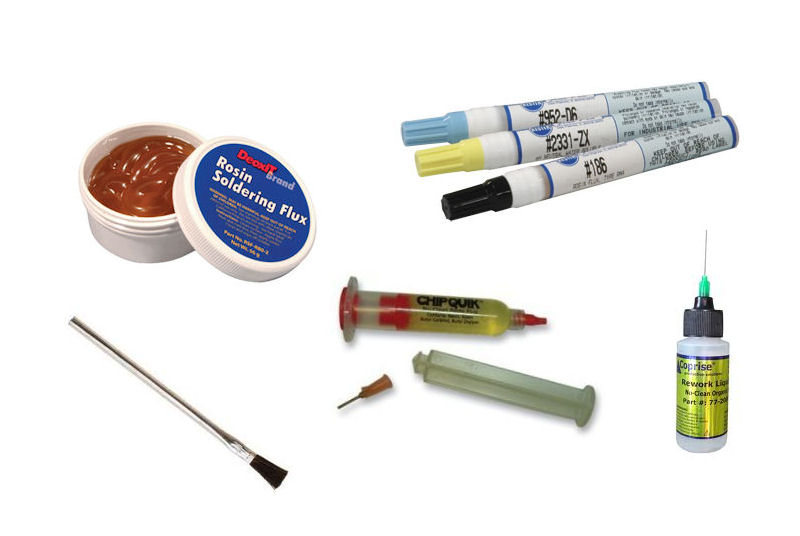 There are times you will need additional flux in addition to what is provided by the solder.  If a joint is heavily oxidized, or you’re having trouble getting the solder to flow, adding a little more flux can help.  Always use an acid type flux, since it cleans better, and then use a flux remover on the board after soldering.  I recommend the flux remover from MG Chemicals.