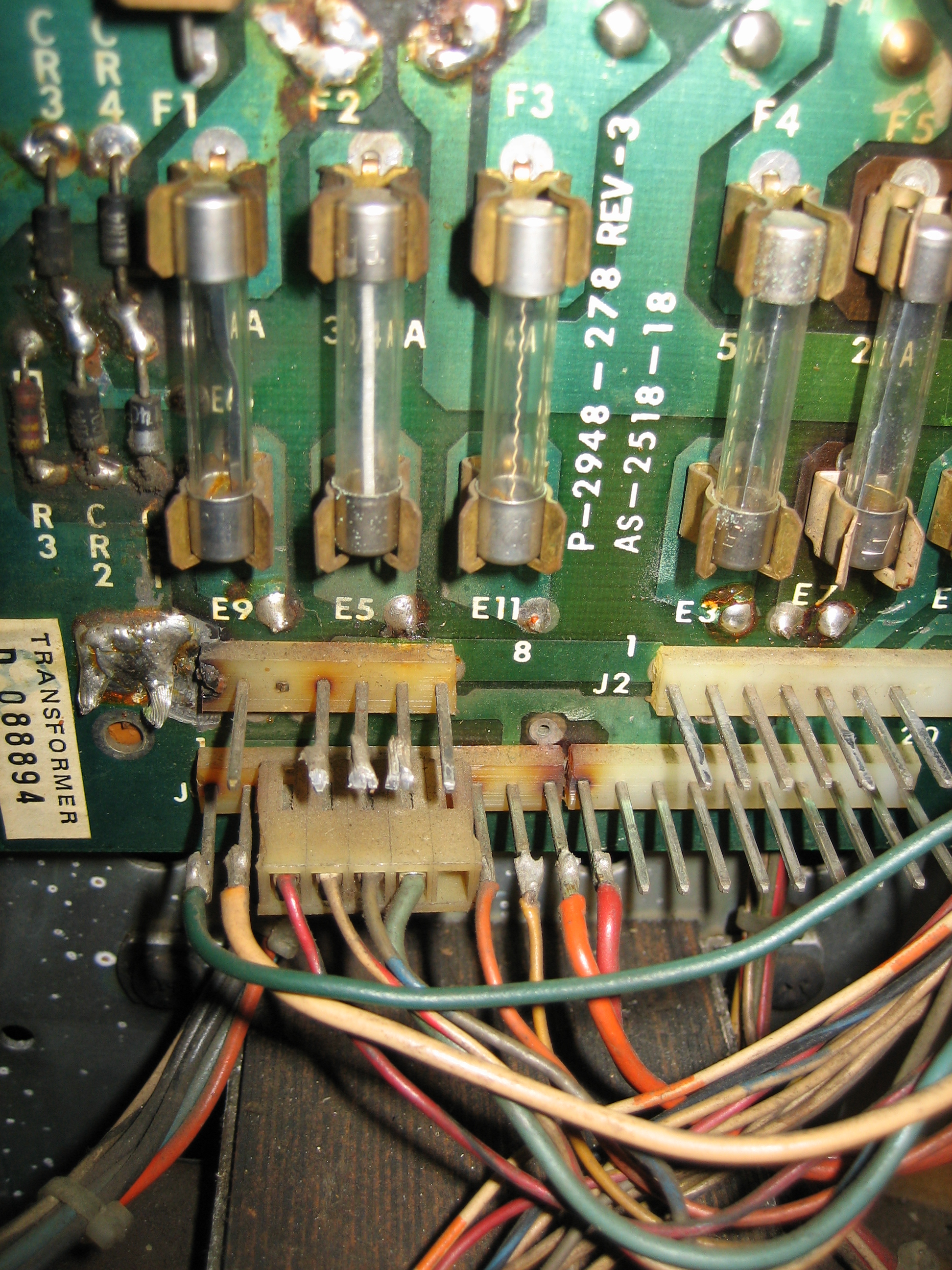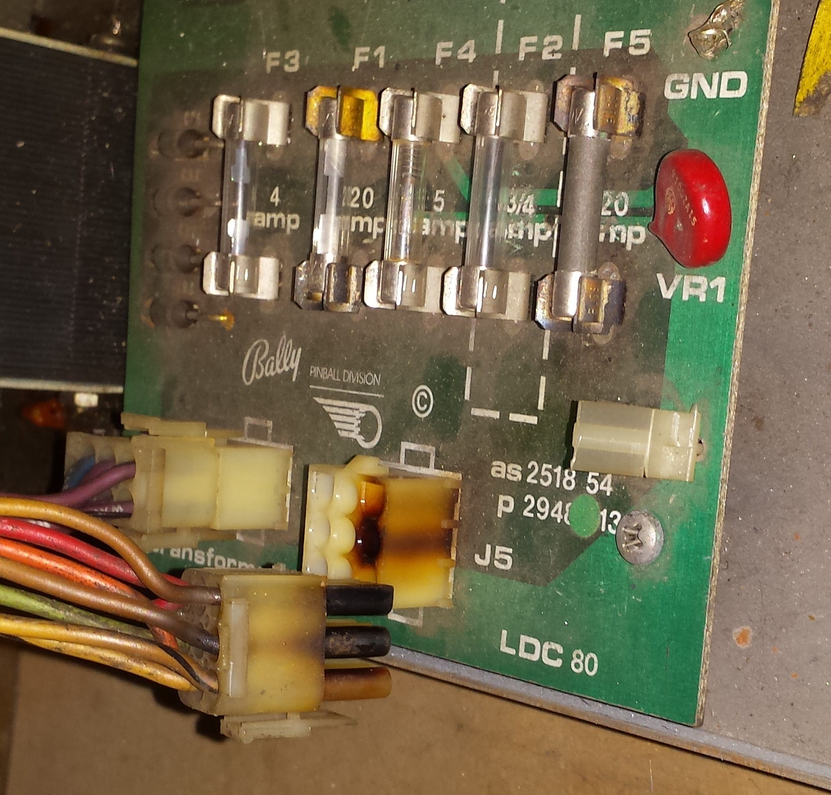I look inside the back box and lift the play field looking for indication of overheat / overcurrent (discolored connectors, solenoid paper wrap, and wiring).