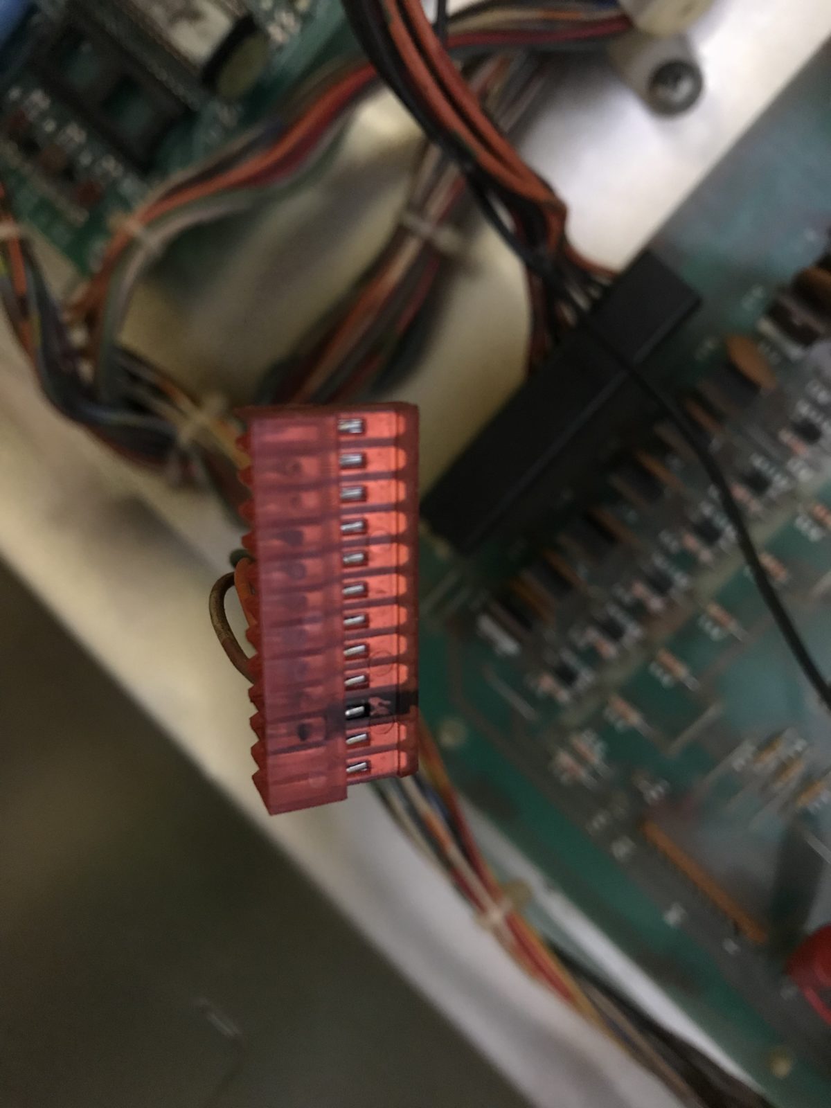 Note: A few wire to wire plugs, like those in early Williams System 3 – 7 pinball machines, as well as Bally machines with Aux Lamp Boards can be plugged in wrong with catastrophic results. When plugging wired plugs back together, compare the color wires on each plug. If they are not the same, stop and look for the match. If one plug is black and the other white, do not plug those together. Note that sometimes the plugs have been replaced and black vs. white colors might no longer apply. In that case, resort to making sure the wire colors match.