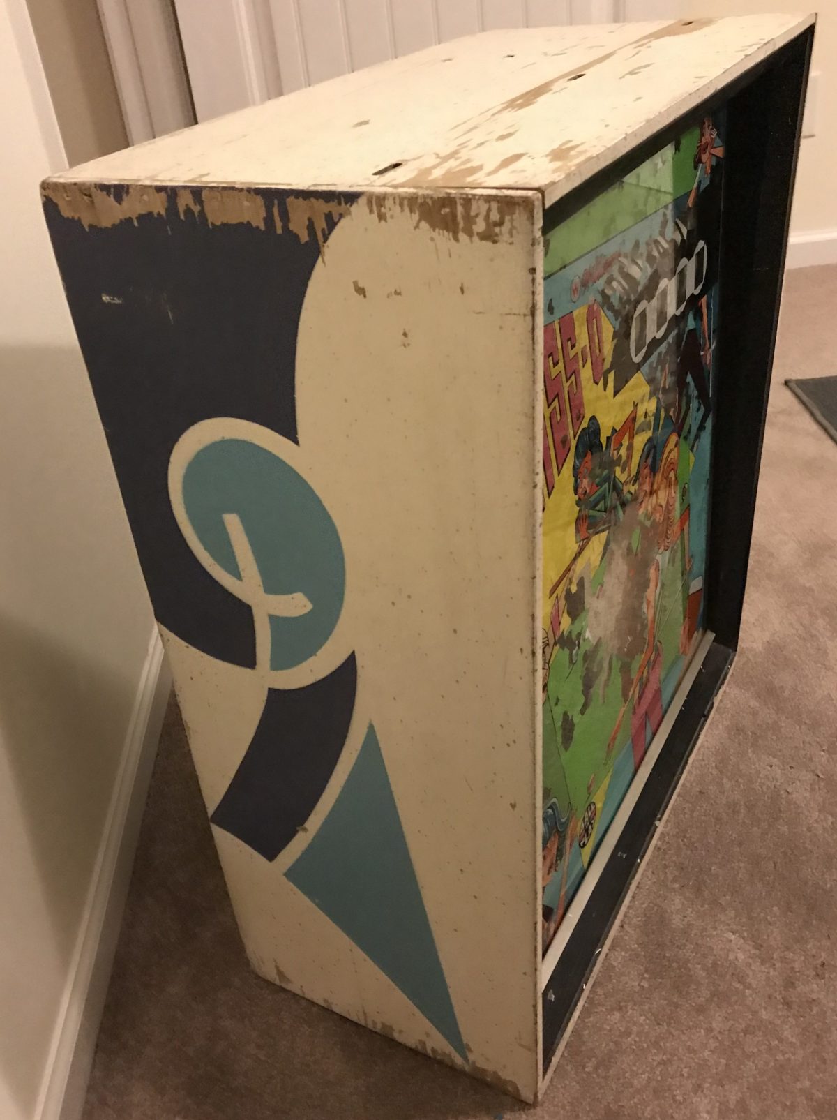 Pinball cabinets get beat up and fade with sunlight. The more beat up a cabinet is, the less valuable it is.