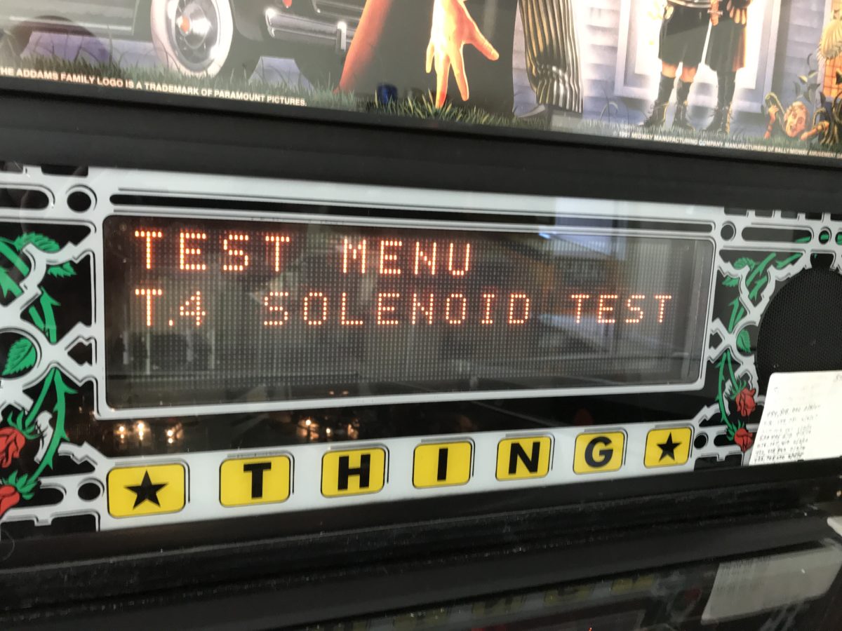 If optos (optical switches) are present, be sure to pay careful attention to these. In Williams pins, they are a bit odd. Mechanical switches show up on the menu as an “X” when something is on the switch (closed). Optos are the opposite. They show up as an “X” when nothing is blocking the light. DE/Sega/Stern optos test like mechanical switches and show up as closed (“X”) when blocked. If optos are used in the ball trough (holds the pinballs for the shooter), it will be necessary to remove them to test the optos, then reload the balls.