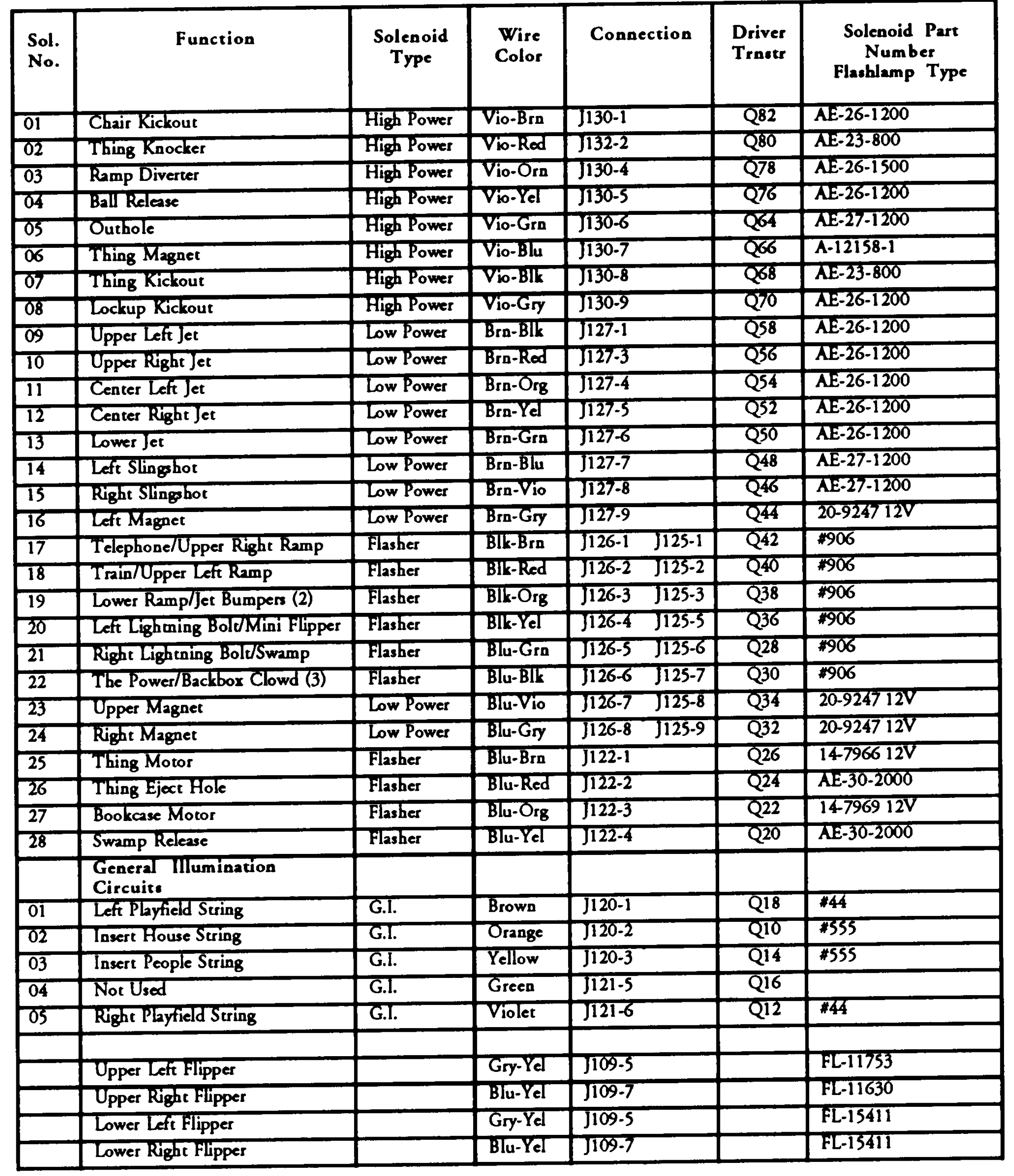 Do the same with the flashers. Then the switched lamps. Replacing most lamps is easy. Some are covered by ramps or other mechanics and are not easy to get to. Run the lamp test with the playfield down, and then lift the playfield and repeat.