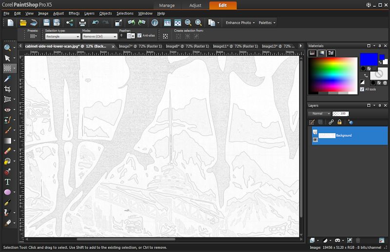 For these examples I’m using Corel PaintShop Pro X5 (a bitmap, or raster, editing program). It has a very slick tool called Find All Edges which makes the process about 10 times faster than doing it manually (of course you do give up some accuracy). If your graphics package does not have an equivalent function, or Find All Edges does not provide good results, you can manually edit the image.