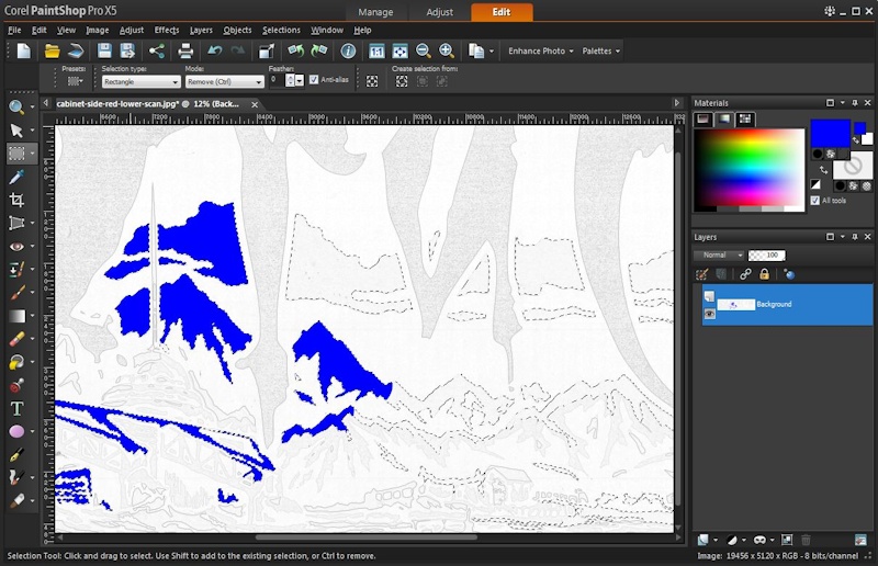 For larger graphics, like a cabinet side decal, you will often have multiple images that need to be combined. If you are using Adobe it has a “PhotoMerge” tool that does a pretty good job of putting images together [see this article for more info – page 364].