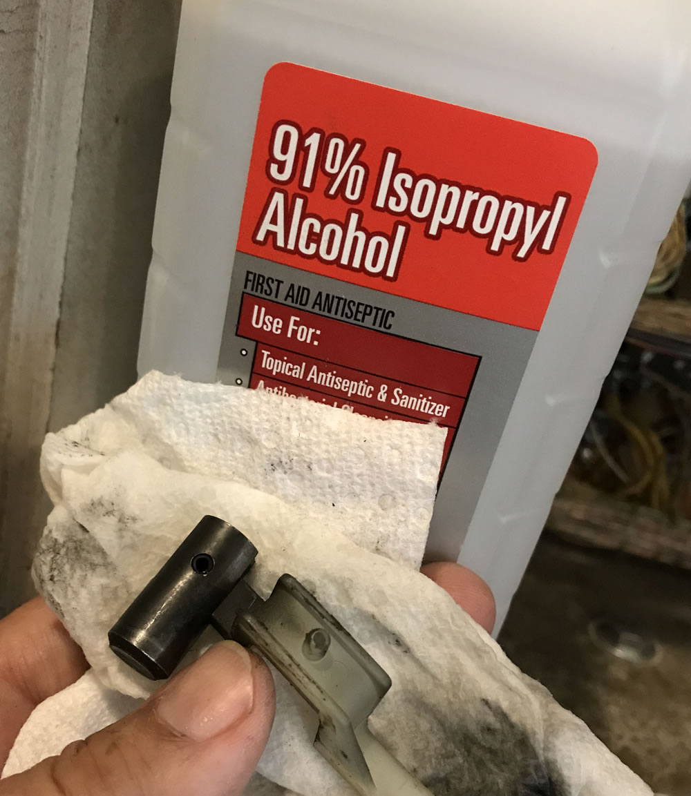 17) Grab the center gear and clean the metal contacts with isopropyl alcohol. Do not add any lubricants to this part.