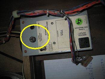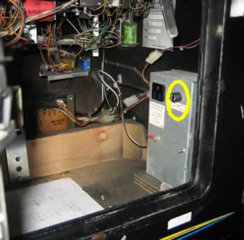 Location of the main fuse for Sega / Data East / Stern games made in the mid – 90’s. If your game is dead, check here. The rest of the fuses are located behind the translite, like in the Bally / Williams games.