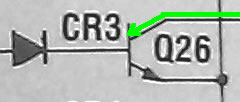 Next, move to the other side of that diode CR3 (B). Check for a pulse again. If it is there, but not the other side of CR3, then the diode CR3 is bad or there is a bad solder joint / broken trace. This is not likely to happen, so check your work. If CR3 is bad, suspect Q26 also.