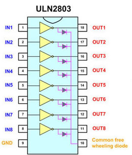 In all the circuit drawings, the red line is the control signal from the computer, while the green line is the current flow from the object (bulb, solenoid, etc.) being turned on/off.