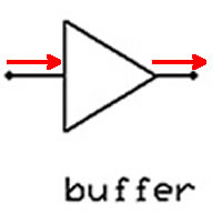 Above are many of the different logic gate symbols that you might see in a circuit. For the most part, they can all be thought of as a buffer. The signal comes in and it goes out.