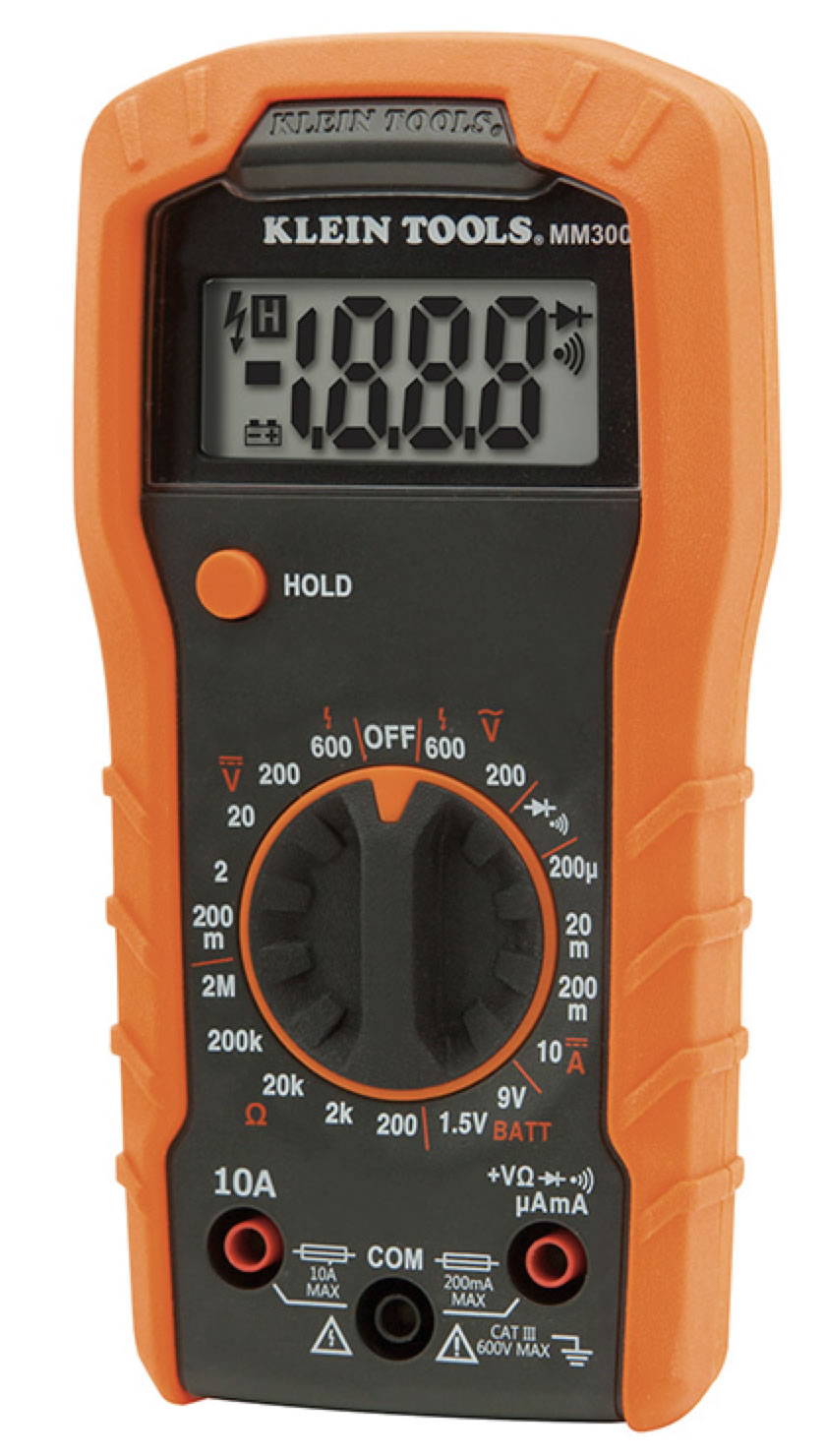 We got a Klein Tools auto ranger voltmeter for about $55. It maybe ‘a poor man’s Fluke’. Guilty as charged. That model is is no longer made. The MM600 is about the equivalent. It has a nice case and removable clips. It measures capacitance. But every time we turn it on and set it to voltage, it defaults to AC. We measure DC most of the time. So we have to wait, then press an orange button. Auto-ranging is a bit slow. At this point, we might purchase a MM300 next.