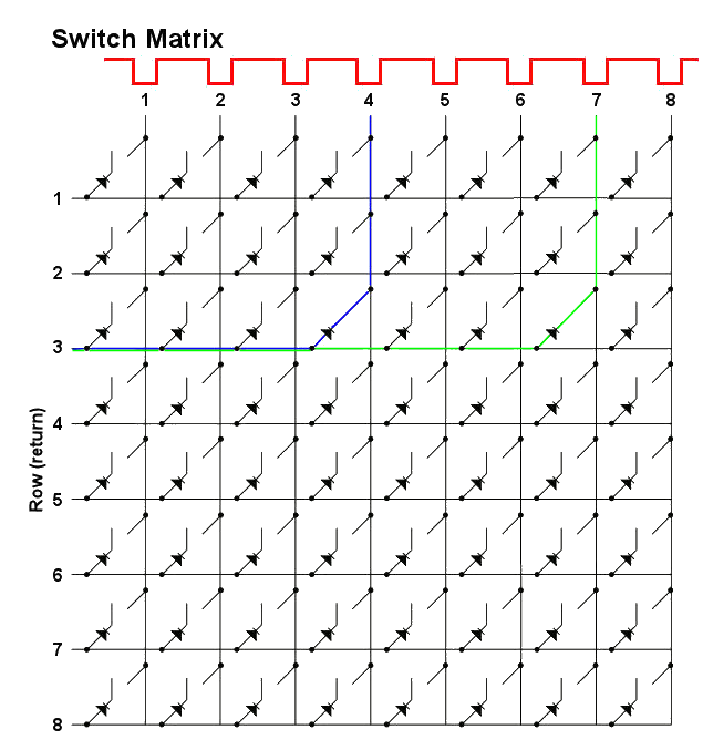 Note: I’ve added a video at the bottom which briefly covers the switch matrix theory of operation and provides detailed information on troubleshooting shorted switch diodes.