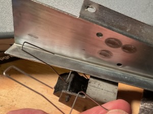 Cut a new piece of piano wire. Bend a ‘U’ at the end of the wire and position it in the slot of the switch. Just for fun, we put a tiny spot of UV activated glue into the slot with the wire.