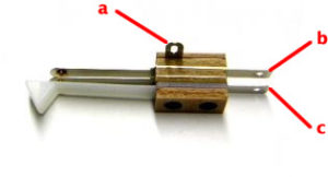 9) Using your switch adjusting tool, adjust the inner switch so that when the start button is pressed in, the contacts meet.  They should touch after pushing in the switch a little bit, perhaps 1/8″, but not with just a light touch.