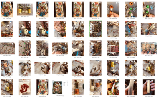 We also use an organization system that uses keywords. As we work on a pinball machine, we insert that machine’s name, frequently an abbreviation, as a keyword for that photo. That makes smart search for that machine quite easy.