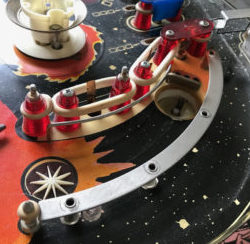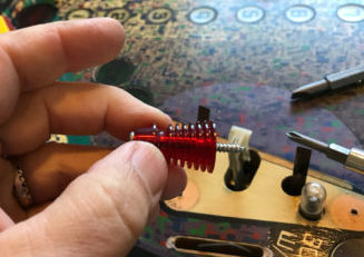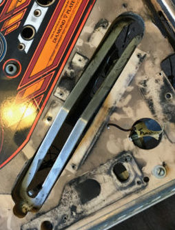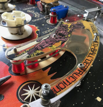 Note: If your playfield has ramps, the down portion frequently is connected to the slingshot plastic. It is OK to remove the nut holding that ramp in place now.