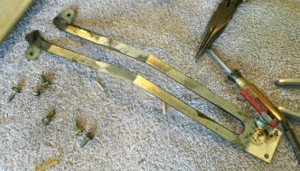 Note that it is crucial to take additional photos as the screws are removed and lay them next to the hole where they were removed from. Some are wood, others machine, different lengths and some have threads on the top to attach a cap or another object.