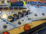 Photo 3 shows the filth around the pop bumper – one of the reasons to fully remove the pop.  Photo 4 shows an upper lane in a Getaway, photo 5 is the upper playfield in a Whitewater, and photo 6 looks to be a Hurricane.  All three of these games are from the 1990’s and have a hard Diamond Plate finish on the playfield.  These can usually be cleaned up by using naphtha, or isopropyl alcohol and a microfiber cloth.  Novus 2 could be carefully used in moderation.