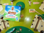 In photos 11 – 13, we have an Gottlieb Play Ball.  This had a layer of filth on it along with yellowed lacquer.  Removing that not only removed most of the damage, but it also brightened the colors.  There were a couple of spots that required small decals.