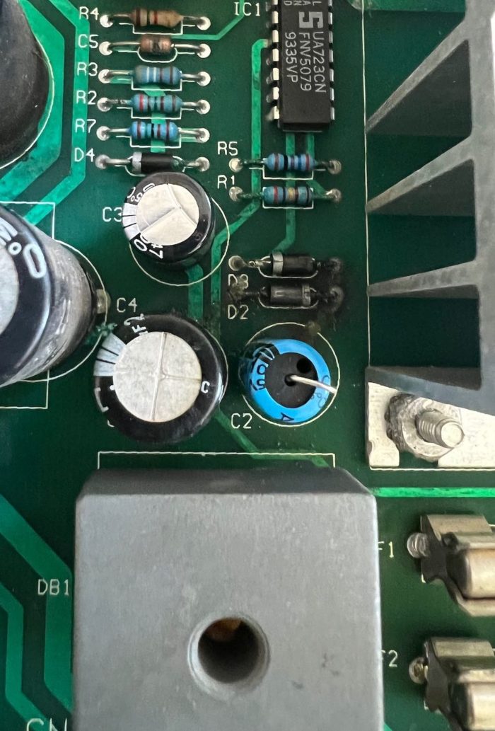 * Inspect / test C2, C3 and C7.   A failed C2 or C3 will result in low 5V DC.  C7 seems to be especially prone to leaking.  If C3 fails, the +5V DC is likely to be half.