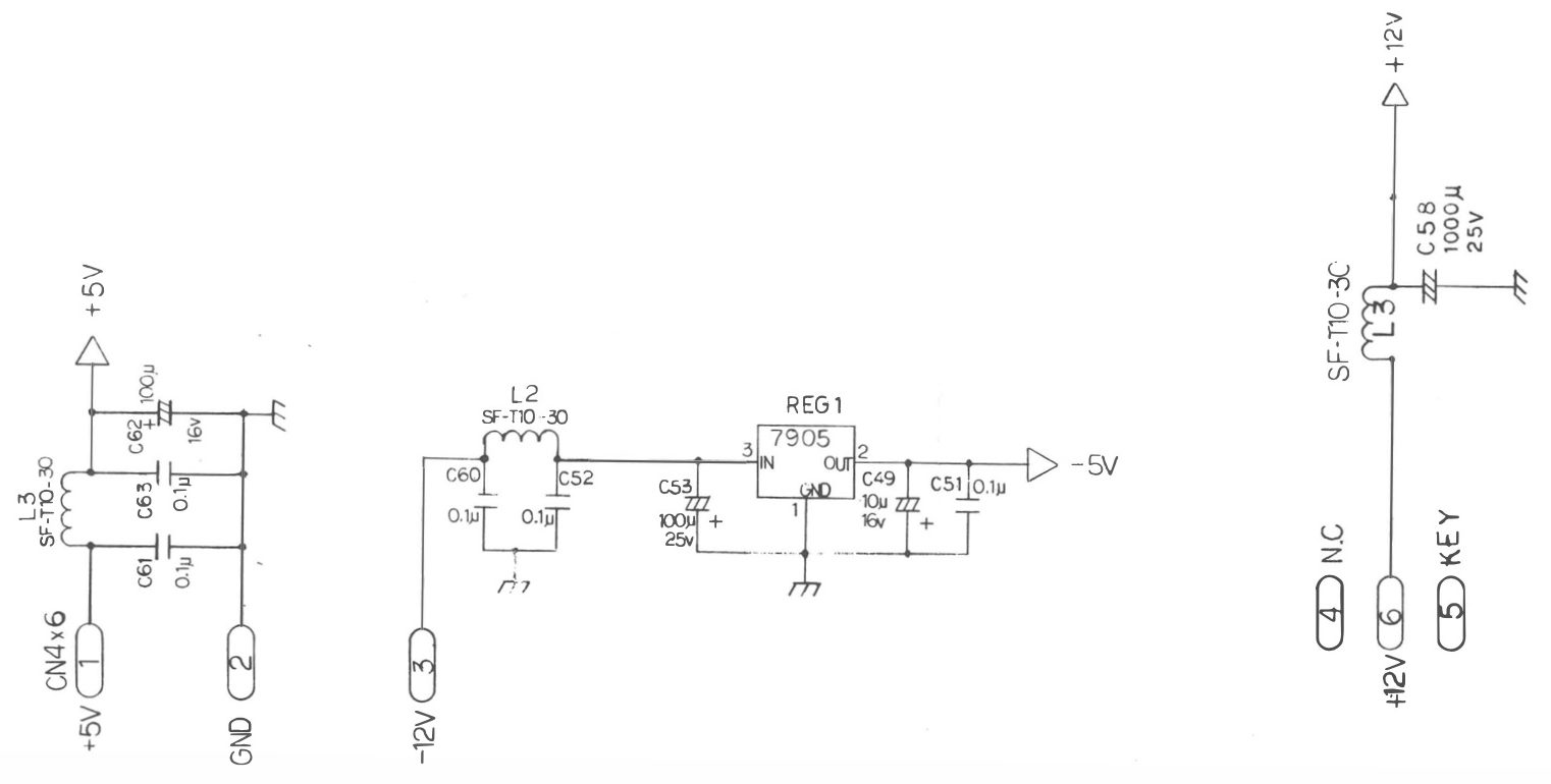 Note:  There are two +5 voltages.  One is from the main power supply board while the other, designated as ‘5A’ is derived from the +12V DC.