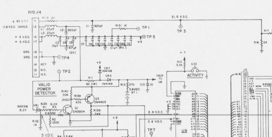 Note that because of the way Bally designed this circuit, the +5 may run a bit high. If it is above 5.2, it could cause booting problems, especially with aftermarket boards. Try removing one end of R49 to see if that lowers the reading to about +5.0. Do this in a way that you can reinstall this resistor if this does not work.