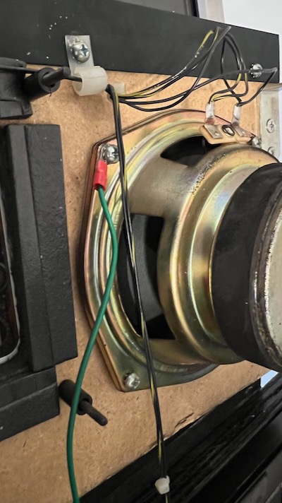 Remove the green ground wire by removing the screw holding it to the speaker.