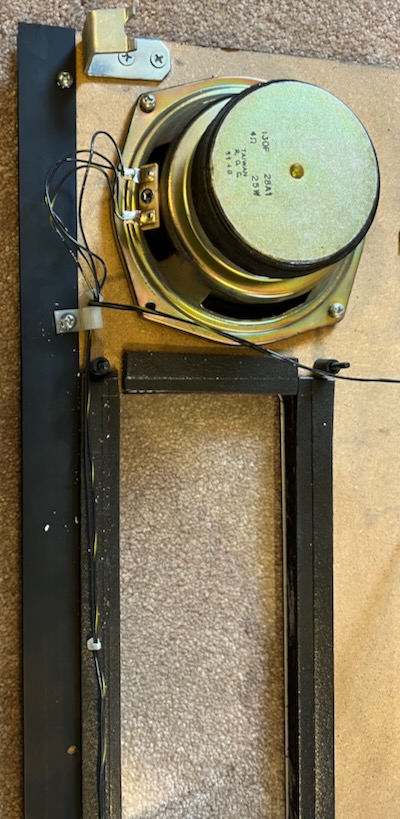Attach the new speakers into position. Note that the speaker wire connections must face the top of the Insert. This can be identified by the screw holes in the wood that held the top plastic piece and wires in place.