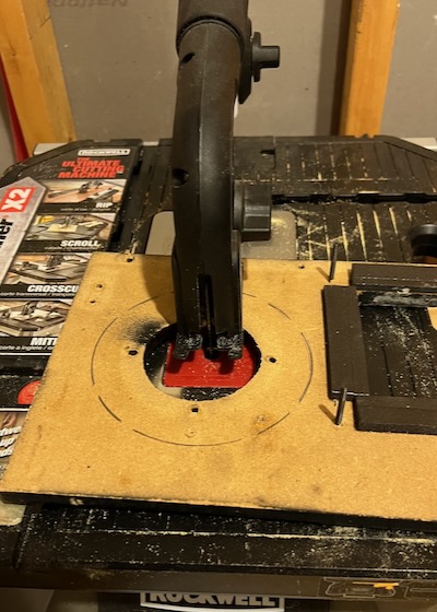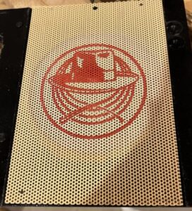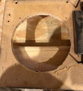 Place the template over the hole and check to insure it is centered. Mark the cutting line. Measure and compare this marking to the other hole where the larger speaker is attached.